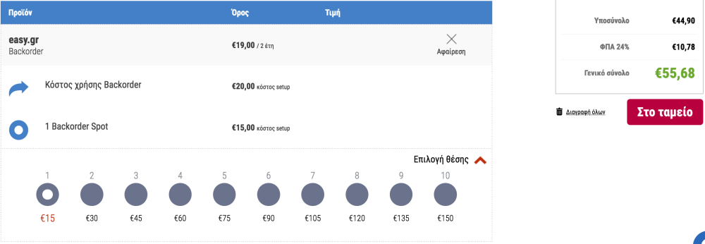 Στην περίπτωση ακύρωσης της εντολής Backorder ή μη επιτυχημένης κατοχύρωσης, το καταβληθέν κόστος των θέσεων και της κατοχύρωσης επιστρέφονται ολόκληρα αυτόματα ως Credits.